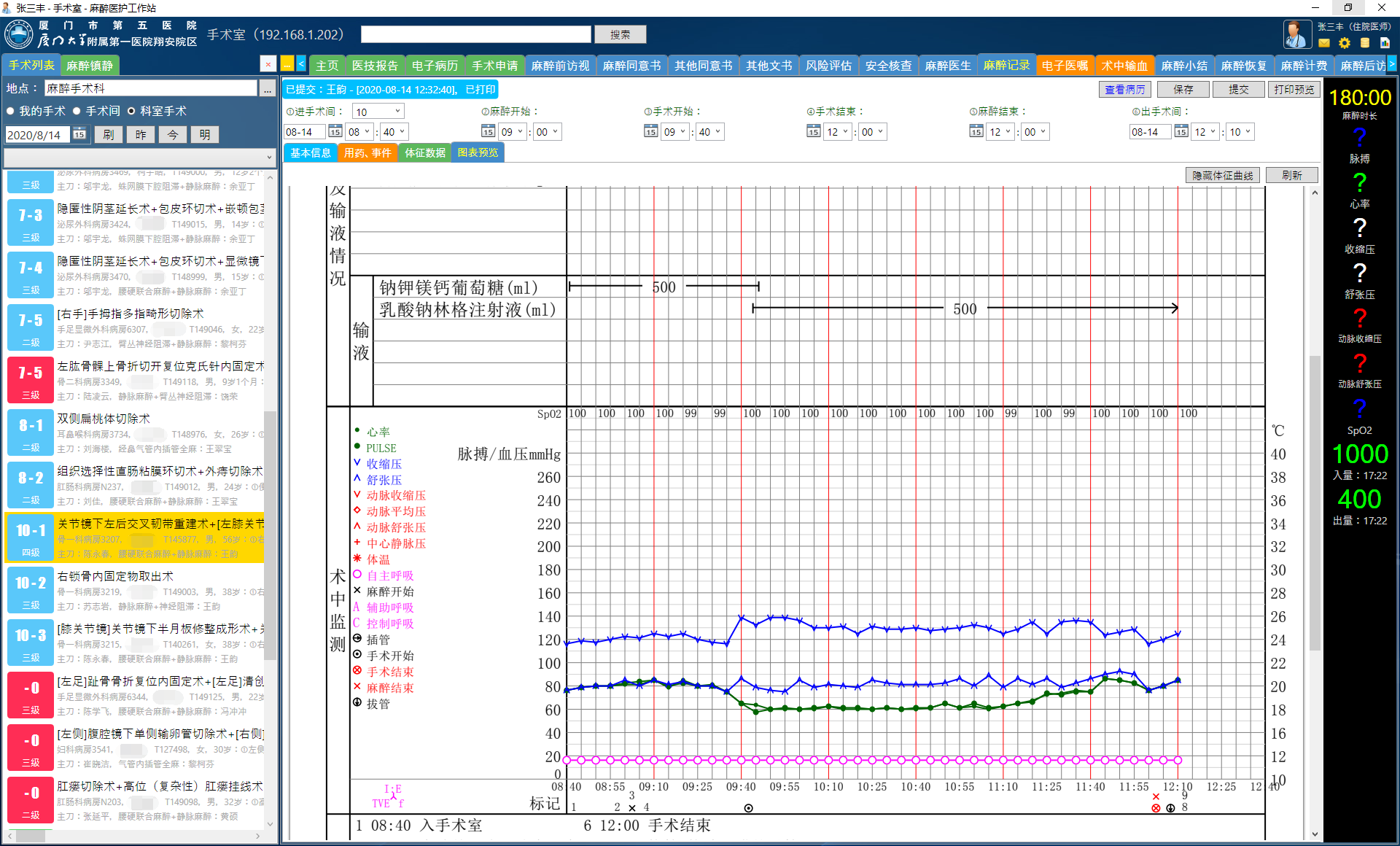 手術(shù)麻醉系統(tǒng)作為臨床信息系統(tǒng)的一部分,和醫(yī)療電子病歷、護(hù)理電子病歷等無縫集成,臨床信息(病歷、診斷、醫(yī)囑、術(shù)前用藥、評(píng)估、同意書等)全部共享到手術(shù)室,手術(shù)麻 醉過程中的訪視、安全核查、麻醉記錄、護(hù)理記錄、恢復(fù)記錄、入出量等全部共享到臨床,真正做到臨床和手術(shù)室完全共享、互聯(lián)互通。